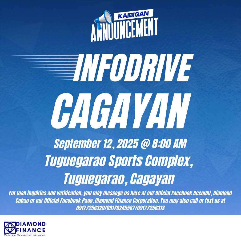 Para sa mga Kaibigan natin sa ILOILO CITY at karatig na probinsya, ang Diamond Finance ay nagsasagawa ng CARAVAN sa inyong lugar mula SEPTEMBER 15-19, 2025! Maaari kayong makapag VERIFY ng inyong account at mag avail ng LOAN ng may mabilis na approval at process! Para sa mga karagdagang katanungan maaari kayong mag-message dito sa […]