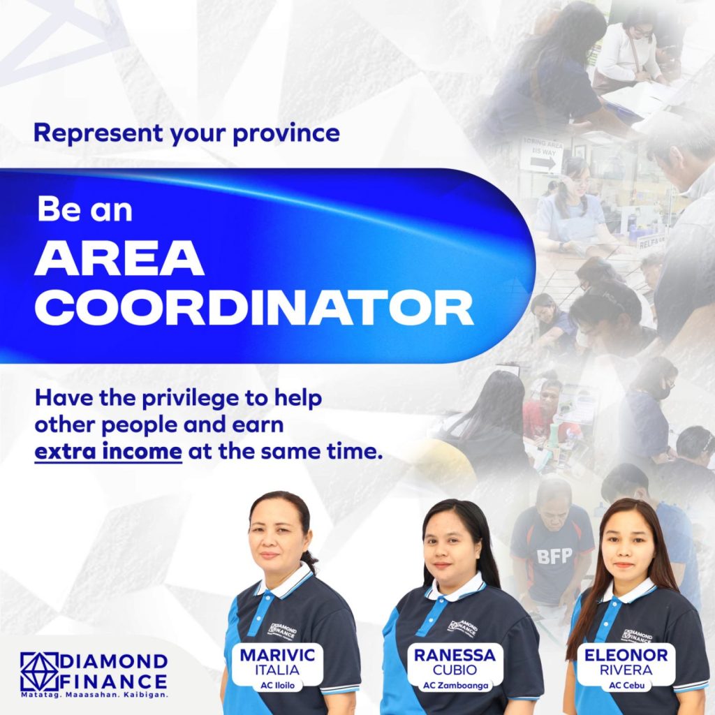 Good News! Another opportunity to earn has been opened by Diamond Finance to our dear Kaibigans! Introducing the AREA COORDINATOR PROGRAM, a program that not only aims to help our Kaibigans earn extra income, but also offers the opportunity to help people in need. Currently, Diamond Finance has admitted 3 Kaibigans into the program: Ms. […]
